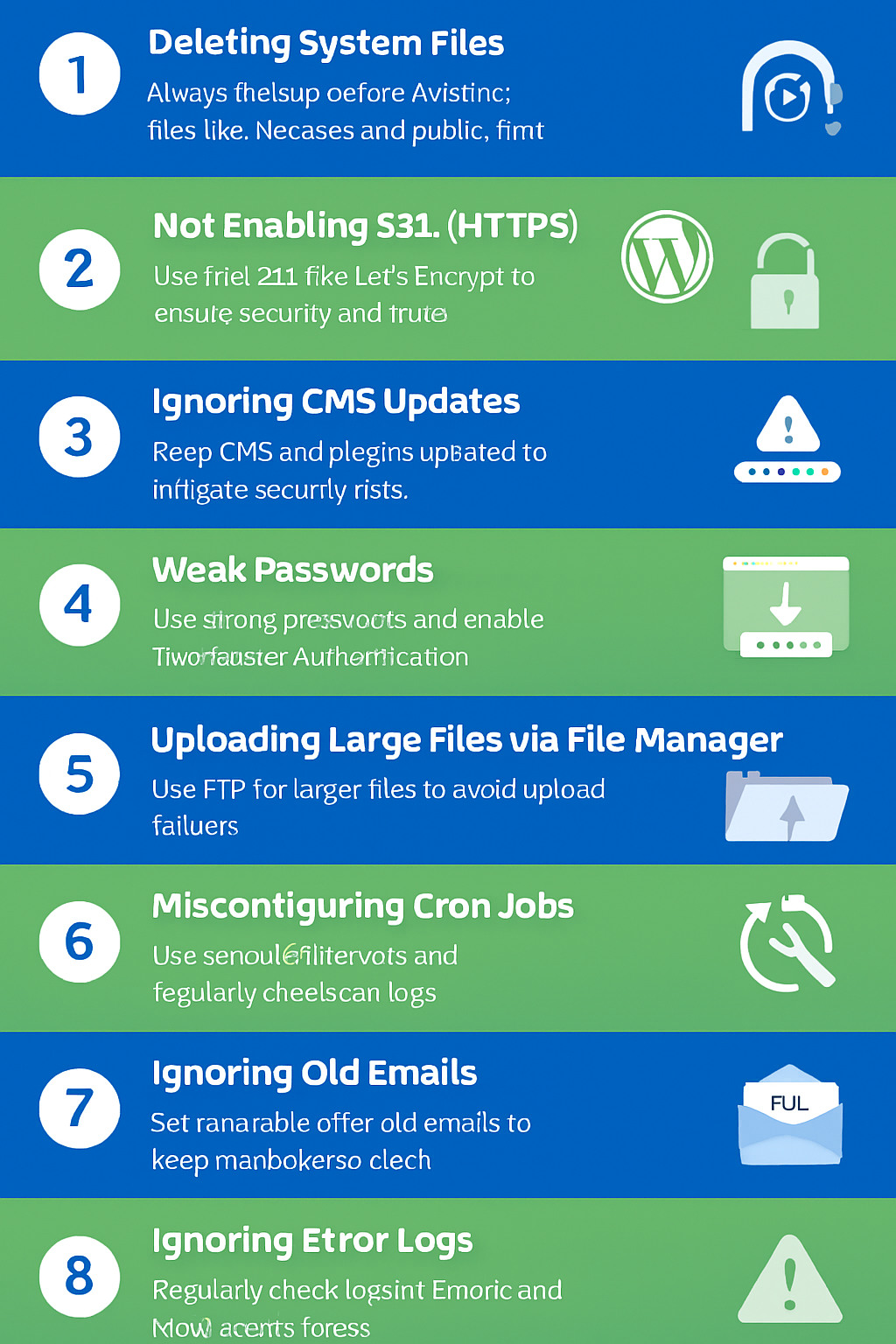Kesalahan umum yang sering dilakukan pengguna saat menggunakan cPanel, lengkap dengan penjelasan dan tips pencegahannya. Cocok untuk edukasi pelanggan hosting atau artikel blog.